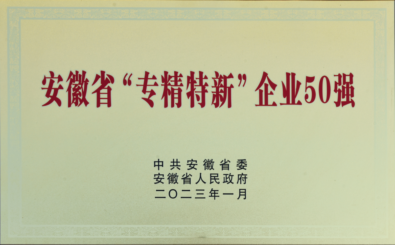 國家級專精特新重點“小巨人”企業(yè)、國家級高新技術(shù)企業(yè)、安徽省“專精特新”企業(yè)50強